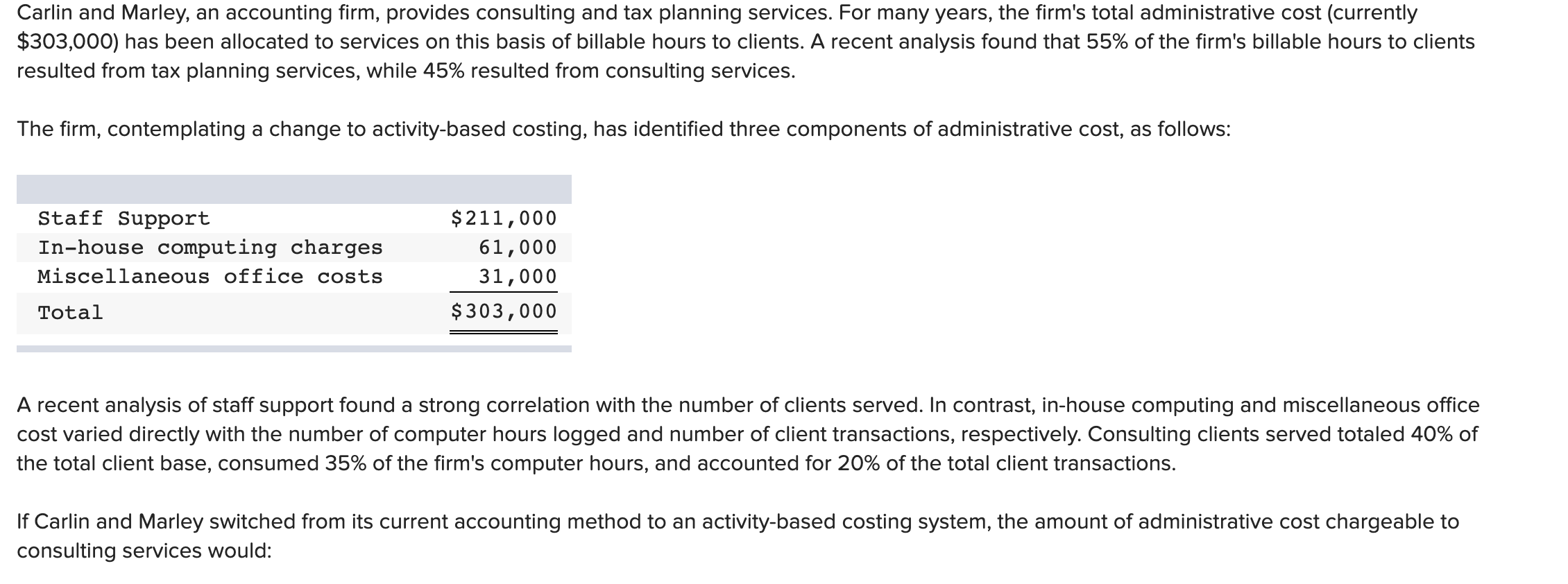 Solved Carlin And Marley An Accounting Firm Provides Chegg Com
